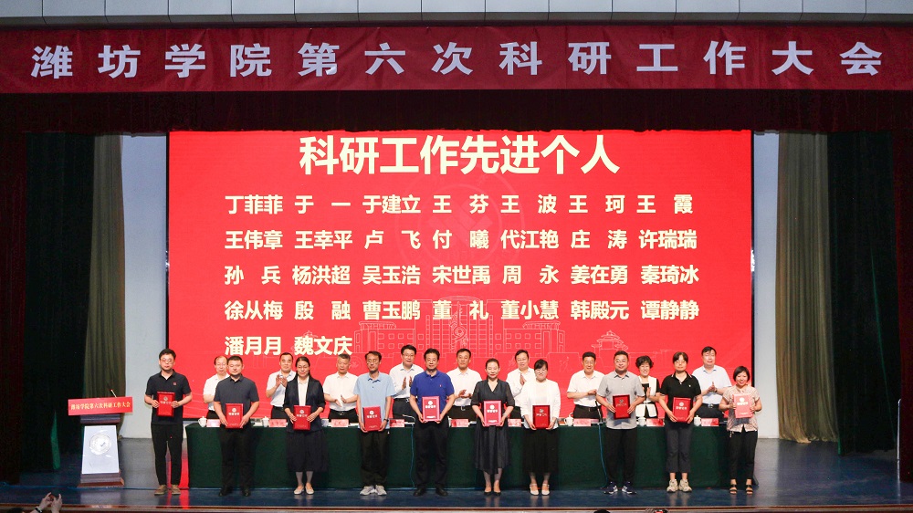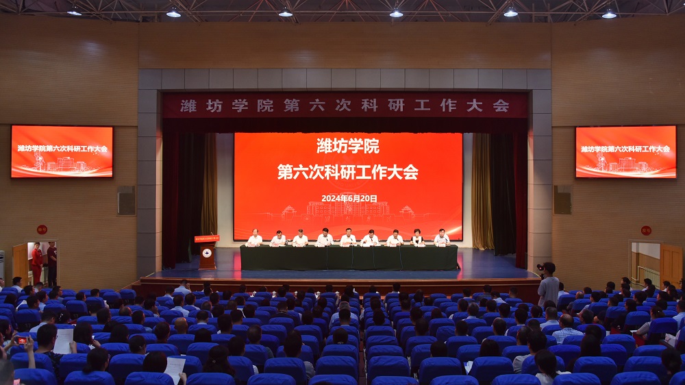 本网讯 6月20日,学校第六次科研工作大会在图书馆报告厅举行。潍坊市人民政府党组成员、副市长狄波致辞,山东省教育厅科技处处长史志远讲话。党委副书记、校长来逢波对科研工作提出要求,党委副书记王守全主持大会,党委委员、副校长王成端宣读表彰决定,党委委员、副校长李英德作科研工作报告。潍坊市科技局党组成员、副局长董书礼,潍坊市科协党组成员、副主席、二级调研员谭福春,潍坊市社科联党组成员、副主席王事懿,学校党委委员、副校长苗金春、赵卫红、任立春,党委委员、纪委书记、监察专员武玉杰,党委委员、组织部部长赵加强,党委委员、宣传部部长张晓静出席大会。
