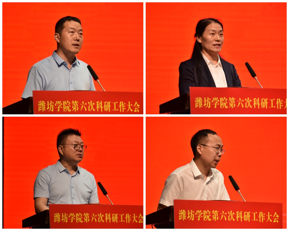 会上,学校对科研工作先进集体、先进个人进行了表彰。“潍坊学院科研卓越贡献奖”获奖单位代表、机械与自动化学院院长解福祥教授,“潍坊学院科研工作先进个人”代表、美术学院董小慧博士,学校合作企业代表严希海教授,我校杰出校友代表、国家重大人才工程青年学者、吉林大学超硬材料国家重点实验室及综合极端条件高压科学中心副主任刘兆东教授,分别作交流发言。