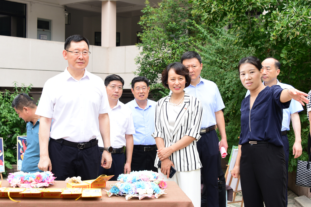 会前,与会领导嘉宾集体参观了学校水生态安全与环境工程学院研发实验室、捕获与催化转化研究实验室、化学化工与环境工程学院实训室、美术学院学生作品展、山东省“多光子纠缠与操纵”高校重点实验室等。