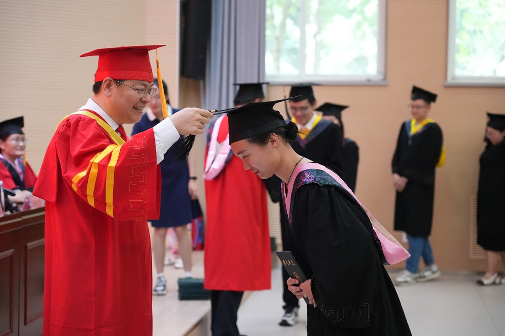 任立春为获得学士学位的毕业生代表拨穗。继续教育学院负责同志和有关负责同志宣读表彰2024届优秀毕业生的决定和准予毕业、授予学士学位的决定。教师代表在发言时送上了美好祝福。校友代表、毕业生代表、在籍生代表也分别发言,表达了对母校的感谢和祝福。