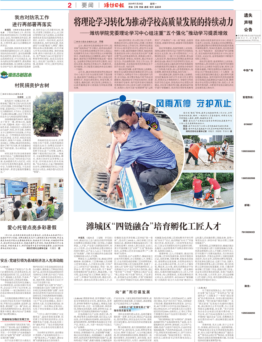 【改革·创新】《潍坊日报》《潍坊新闻联播》等媒体播发我校党委理论中心组学习典型经验文章