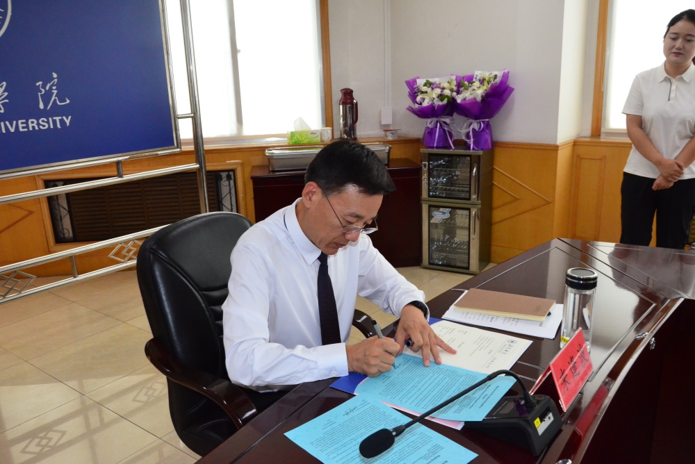 学校校长来逢波代表学校分别与泰国皇家园大学校长塔纳朋·萨伦布拉纳、马来西亚国立大学信息研究院院长拉比雅教授签署合作协议。