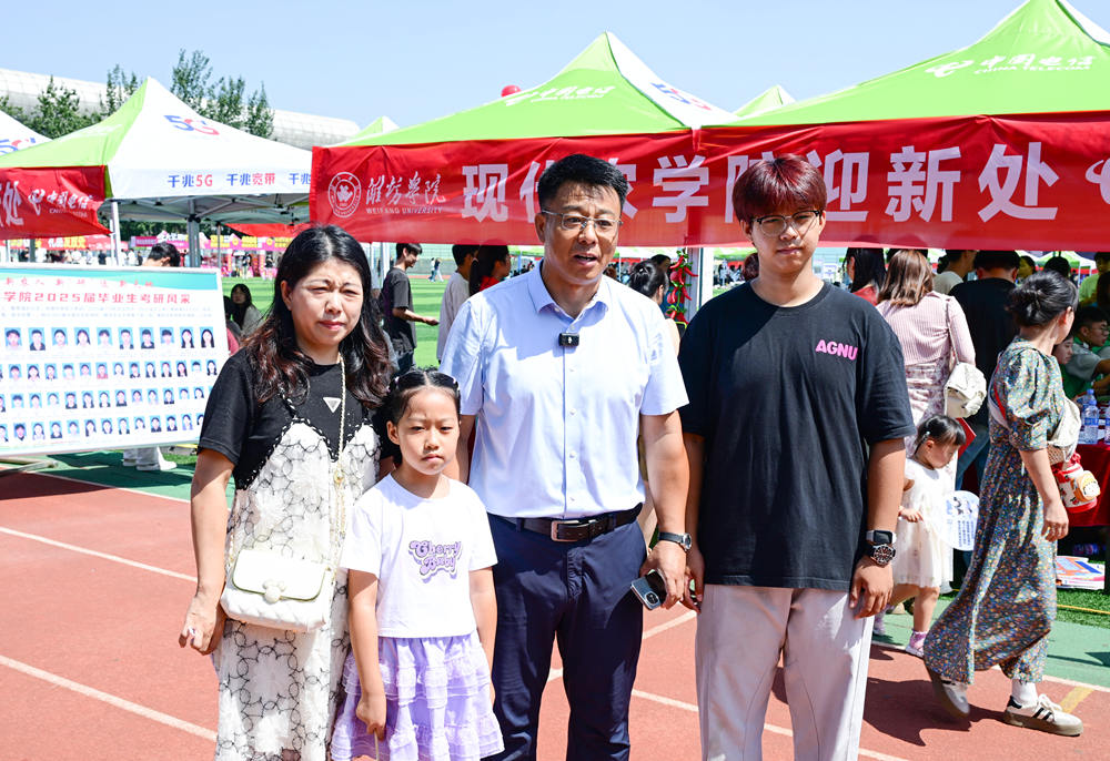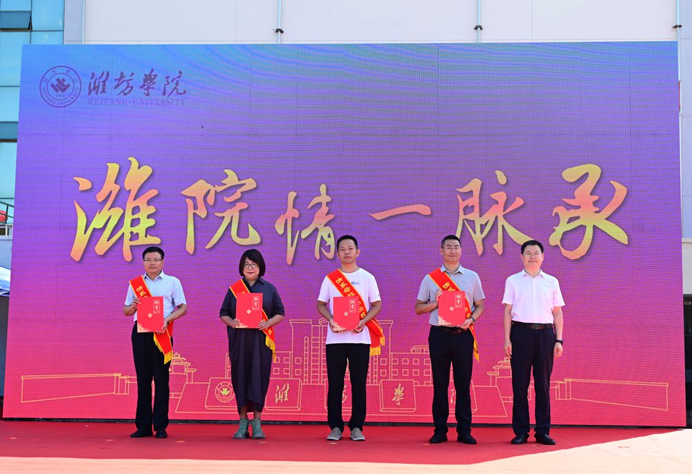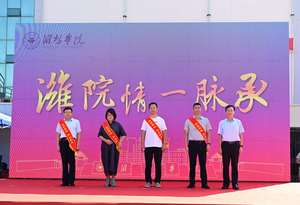此次迎新现场还推出“潍院情・一脉承”特色活动,邀请潍院校友家长代表与校友校长代表共同参与。其中,潍院校友家长代表均为潍院往届毕业生,其子女于今年考入母校;校友校长代表则来自2025级新生的毕业高中。活动中,潍院校友家长代表分享了自己与潍院的故事及对孩子大学生活的殷切期许;校友校长代表结合高中与大学教育衔接的核心要点,为新生送上成长寄语。真挚的互动不仅让“潍院情”在新老两代人之间传递,更为迎新现场增添了别样温情。活动现场,来逢波为校友校长配发“情系母校杰出校友”绶带,任立春颁发学生发展“家校社共育”特聘导师聘书,期待校友们发挥职业所长,助力贯通人才培养“最后一公里”,当好校校合作的“连心桥”与“引路人”。