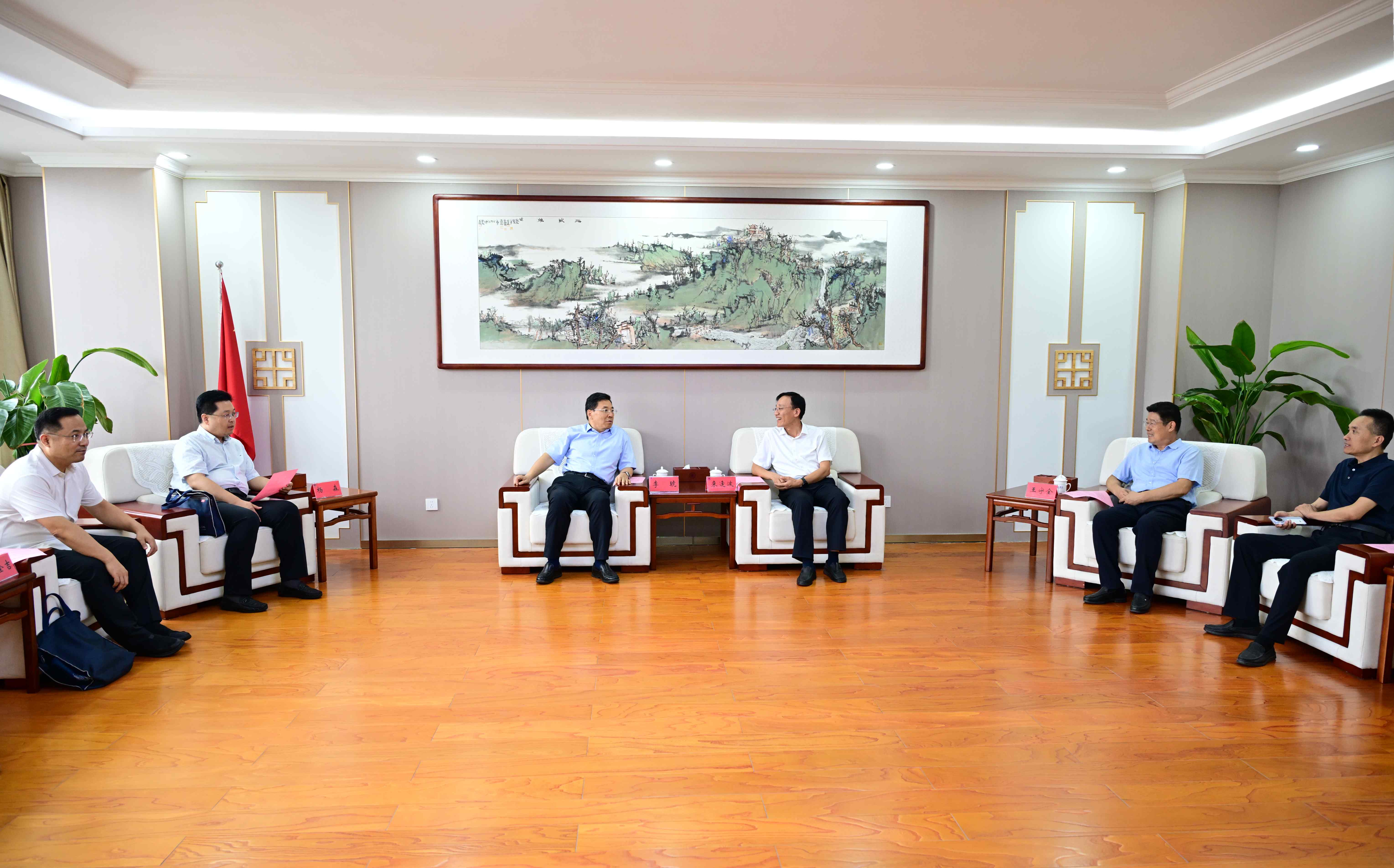 本网讯 9月8日,省欧美同学会副会长、省政府参事李琥一行3人来校调研,学校党委书记来逢波、党委副书记王守全会见客人,潍坊市委统战部分管日常工作的副部长李全吉陪同调研并主持座谈会。