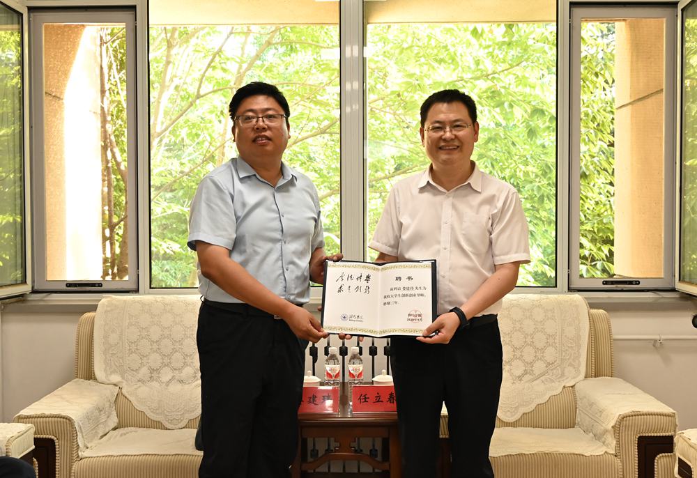 本网讯 9月25日,学校“青创‘潍’来”创客训练营暨第十五届“挑战杯”大学生创业计划竞赛启动仪式在知新楼举行,学校党委委员、副校长任立春出席活动并为校外专家颁发聘书。