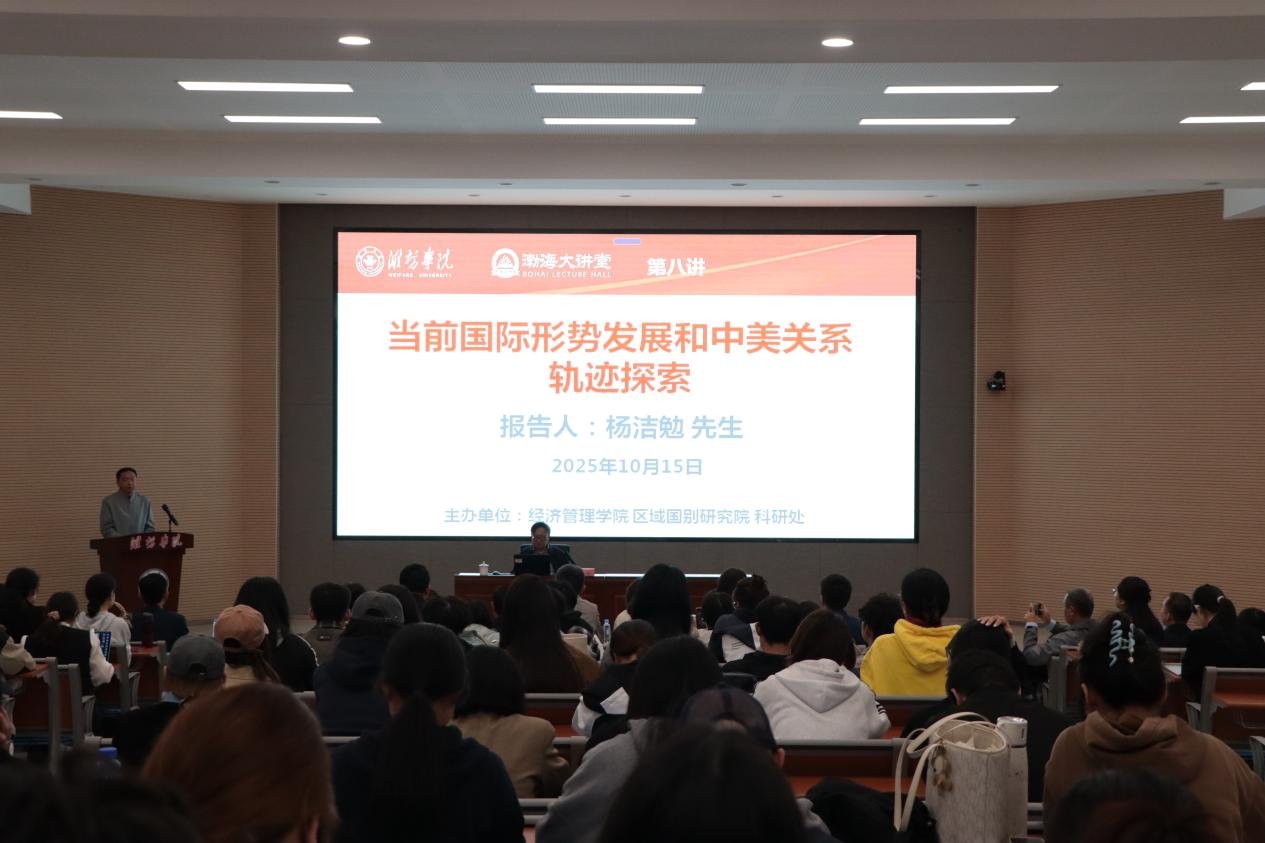 10月15日,杨洁勉应邀做客学校“渤海大讲堂”,为学校师生作了题为《当前国际形势发展与中美关系轨迹探索》的报告。