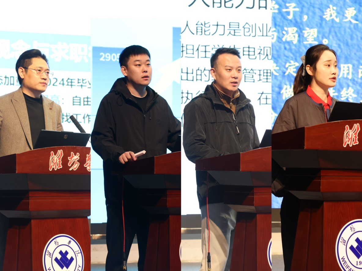在同步举办的山东省大学生就业引航计划宣讲会现场,4位行业专家、优秀校友及基层代表担任“就业引航员”,为2026届毕业生代表解读就业形势、传授职场经验、分享基层就业创业经历。任立春和秦志伟共同为4位“就业引航员”颁发“潍坊学院大学生就业创业导师”聘书,进一步充实学校就业指导力量,为毕业生职业发展提供更多外部智慧。
