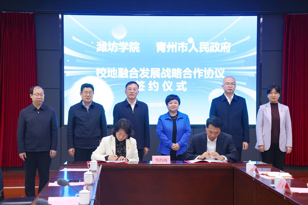 宋伟伟指出,潍坊学院作为省属全日制综合性大学,学科门类齐全、科研实力雄厚、育人成果丰硕,是潍坊市高等教育的领头羊、排头兵。近年来,潍坊学院与青州在人才引育、产业发展、科研创新等领域开展了一系列务实合作,为青州的经济社会发展提供了强有力的支撑。此次战略合作协议签订,既是对前期交流合作的进一步深化,也标志着双方合作开启了新的篇章,期待双方进一步畅通校地融合、双向赋能的合作通道,推动协议落地见效、早结硕果,携手开创共赢发展新局面。