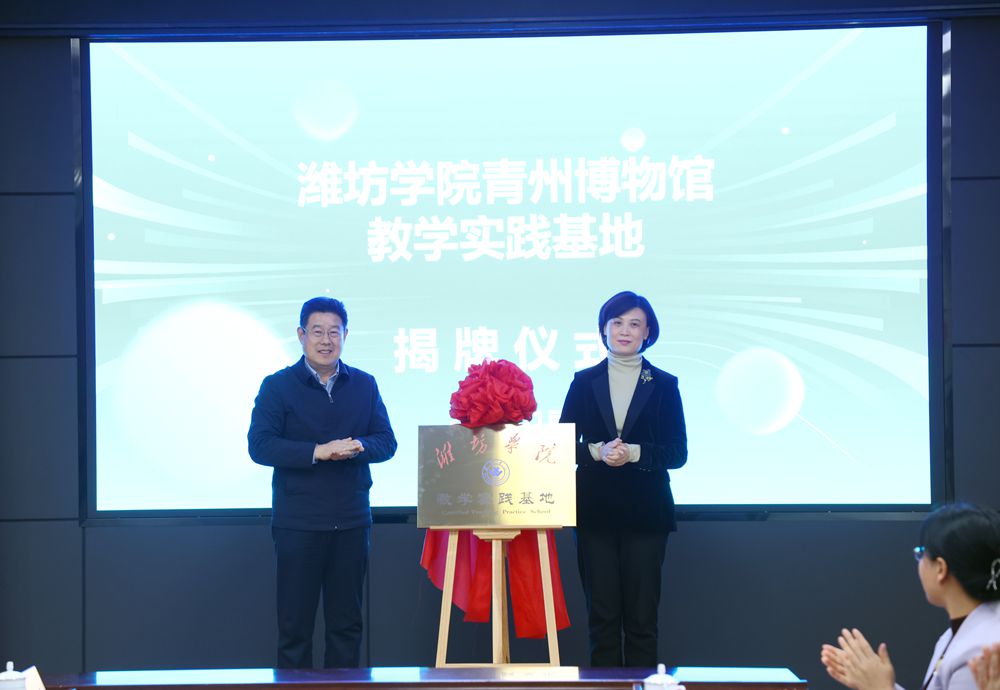 签约仪式上,王霞与田永全代表校地双方签署校地融合战略合作协议。王守全与青州市文旅局局长张凝共同为青州博物馆“潍坊学院教学实践基地”揭牌。李英德与青州市坦博尔服饰股份有限公司常务副总经理肖娜代表双方签署校企合作协议。根据协议约定,校地双方在产学研合作、人才培养、科技创新、文化传承、特色产业发展等方面进行深化合作交流,携手树立校地融合发展新标杆。
