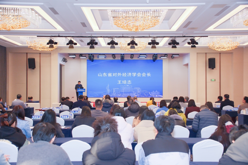 王培志在致辞中对年会的召开表示祝贺。他指出,面对全球经贸格局的深刻调整,本次论坛以“建设更高水平开放型经济新体制战略”为主题展开研讨,旨在为山东把握新机遇、应对新挑战凝聚智慧。学会将继续发挥桥梁纽带作用,团结全省对外经济研究力量,为省委省政府决策提供智力支持,为全省对外开放实践贡献学术智慧。