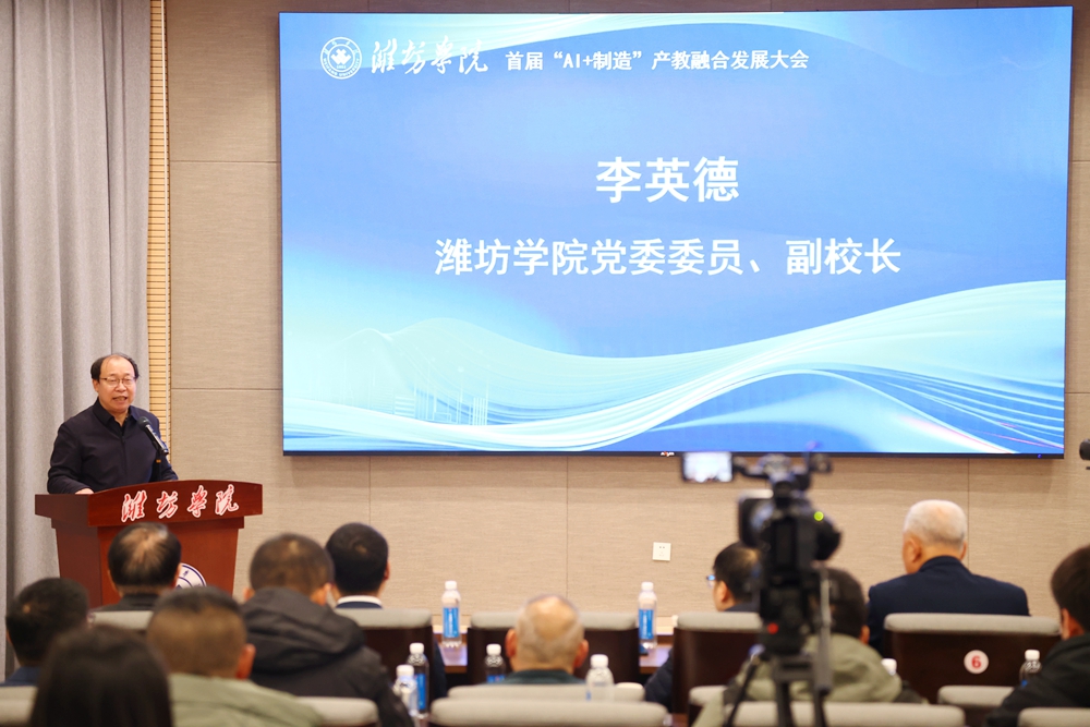 李英德代表学校向与会嘉宾表示热烈欢迎,他表示,作为地方应用型本科高校,学校始终坚持以服务区域发展为导向,持续深化人工智能与智能制造领域的产教融合、协同育人机制,进一步推动人才培养体系与产业需求精准对接,为潍坊制造业智能化转型提供高素质应用型人才支撑。