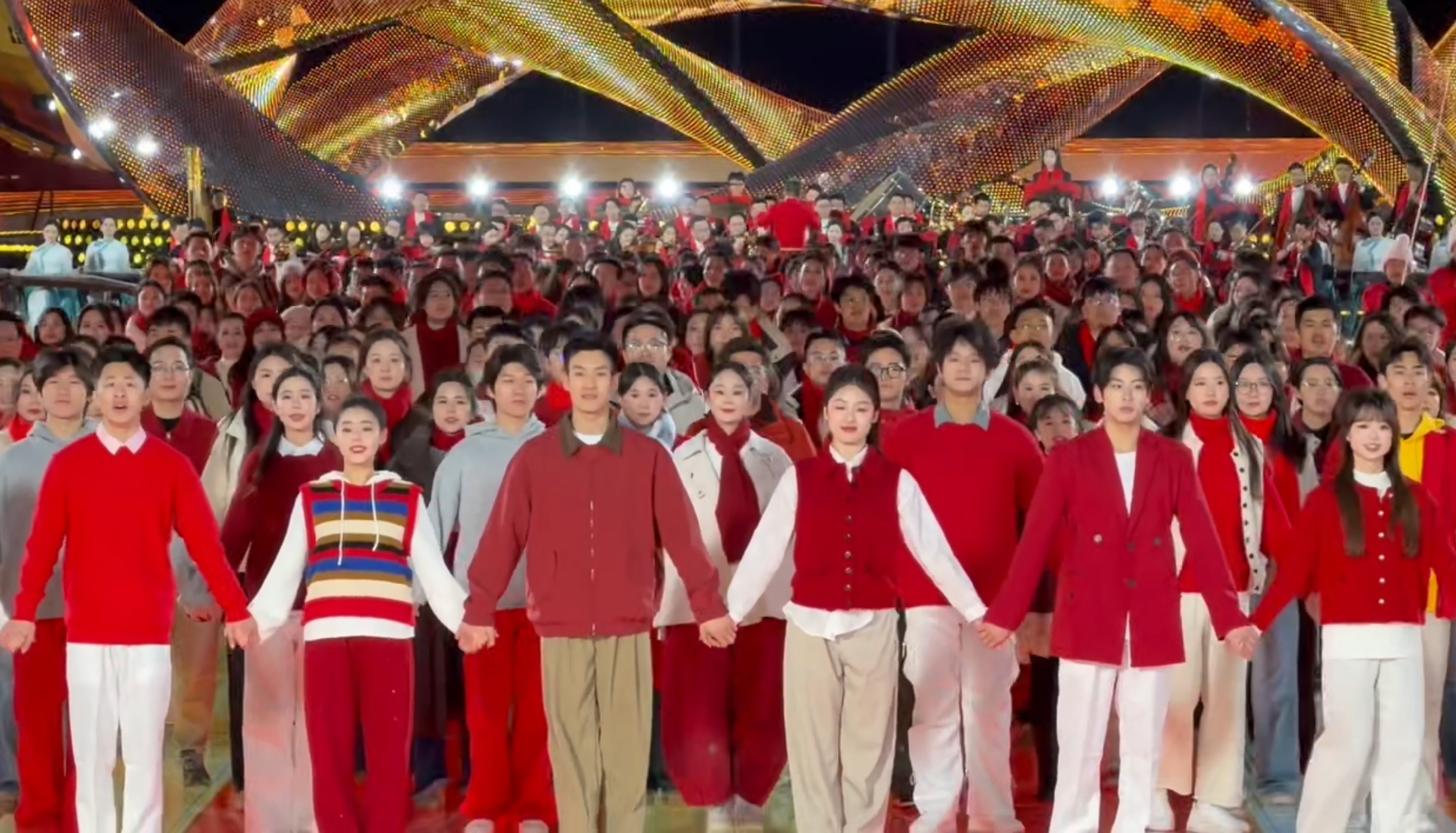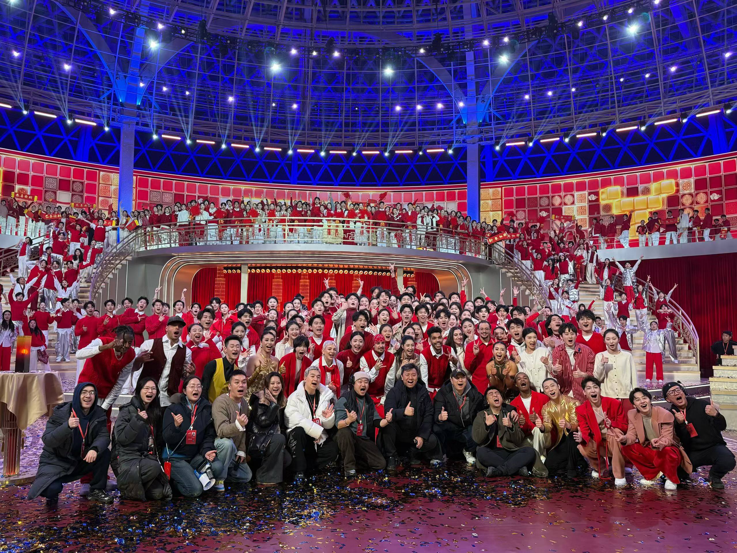 本网讯 2月16日,2026年央视春节联欢晚会落下帷幕。学校音乐与舞蹈学院31名师生受邀参加央视春晚义乌分会场《世界义乌中国年》节目,历时45天高强度封闭排练,以精湛的专业表现圆满完成了表演任务,在国家级的舞台上展现了学校师生的风采。